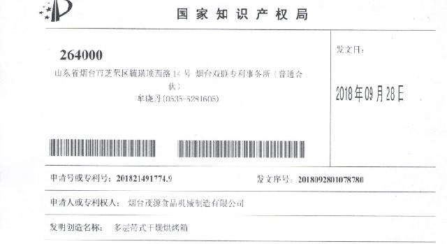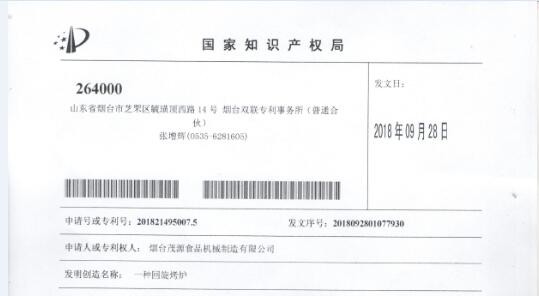 煙臺茂源食品機械制造有限公司新專利公布
