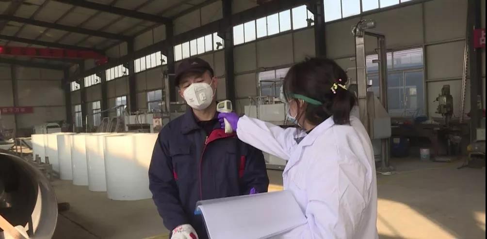 在煙臺茂源食品機械有限公司的大門口,公司安排了專門人員為進入廠區(qū)的工人進行體溫檢測,這是企業(yè)為切實防止人員流動和集聚帶來的交叉感染,有序做好企業(yè)復工后疫情防控工作的一項具體舉措。