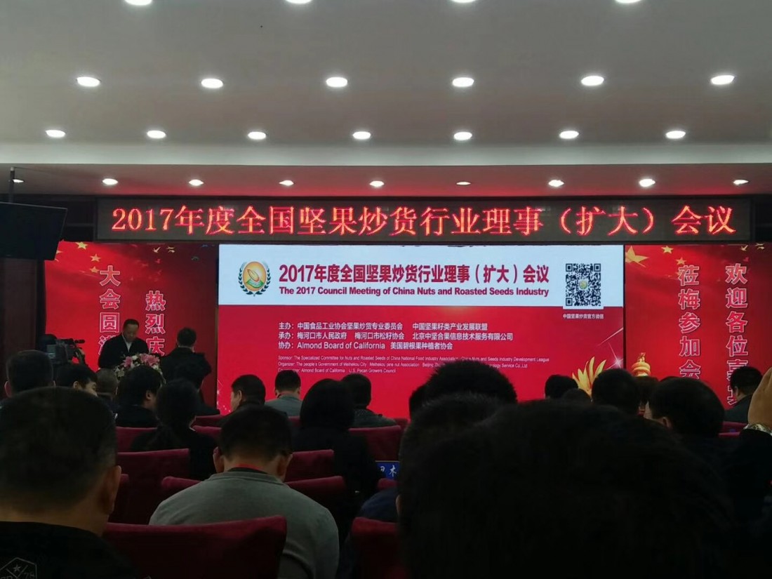 由中國食品工業(yè)協(xié)會(huì)堅(jiān)果炒貨專業(yè)委員會(huì)主辦的“2017年度全國堅(jiān)果炒貨行業(yè)理事會(huì)(擴(kuò)大)會(huì)議”,于2017年10月23日—25日在吉林梅河口市召開。出席此次會(huì)議的代表有:協(xié)會(huì)執(zhí)行會(huì)長、副會(huì)長、全體理事單位;梅河口市政府、廣西龍州縣政府、云南臨滄縣政府有關(guān)部門領(lǐng)導(dǎo)以及吉林省有關(guān)市縣的領(lǐng)導(dǎo);出席的有關(guān)部門還有國家食藥監(jiān)總局三司、吉林省食品安全質(zhì)量檢驗(yàn)檢測(cè)所,以及美國、俄羅斯、越南、巴基斯坦等國家堅(jiān)果協(xié)會(huì)、企業(yè)代表,共計(jì)500余人參加了會(huì)議。