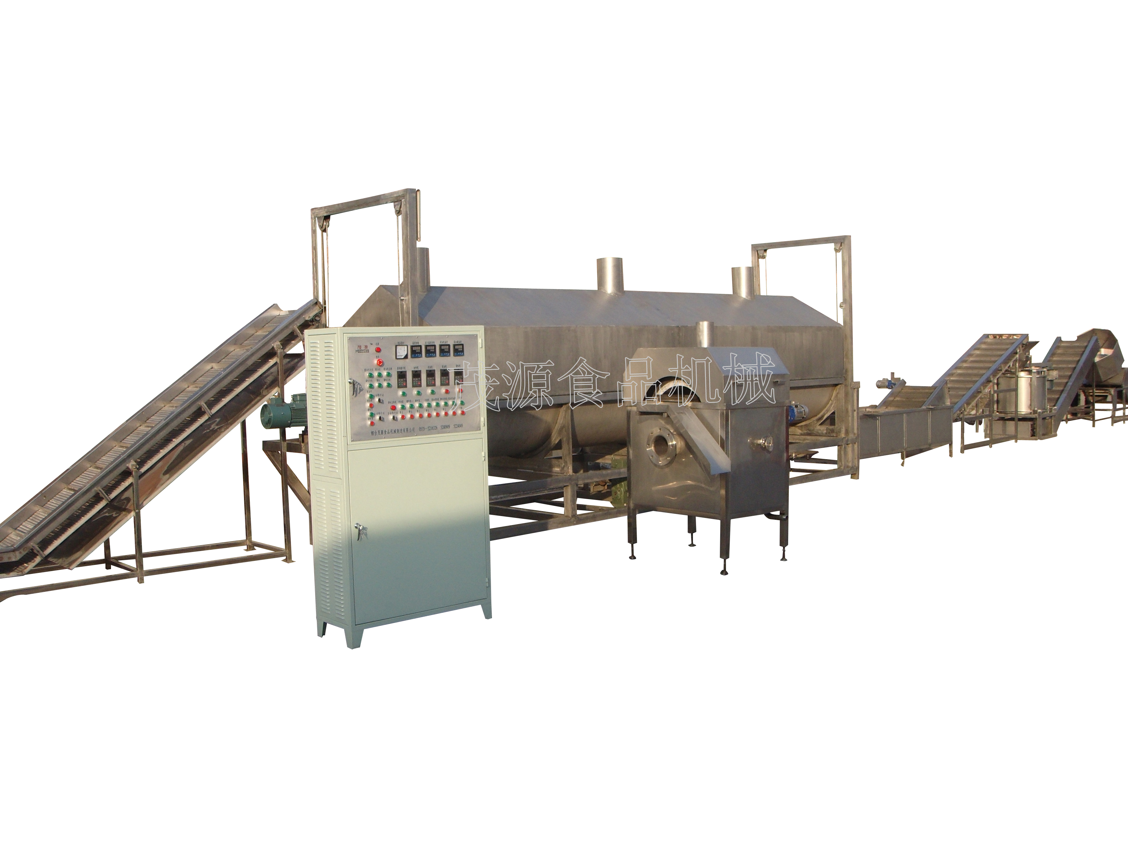 連續(xù)油炸生產(chǎn)線主要設備:原料輸送機,油炸機,浸油機,輸送機,脫油機,輸送冷卻機,自動拌料機,輸送機,定量添加劑機。連續(xù)過濾機。